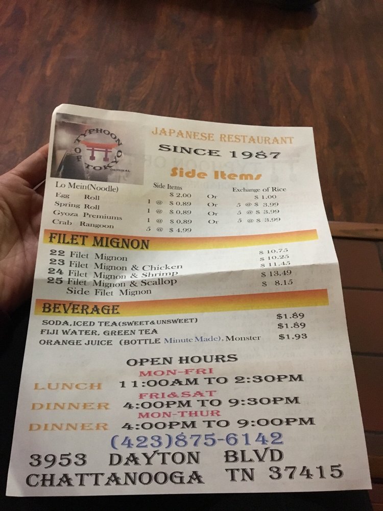 Welcome to Typhoon of Tokyo, a beloved gem nestled in Chattanooga, TN. This unassuming eatery is a paradise for lovers of Japanese cuisine, specializing in tantalizing hibachi dishes that leave a lasting impression. Customers rave about the steak and chicken combo, complemented by their signature white sauce, which has garnered enthusiastic praise for its irresistible flavor.